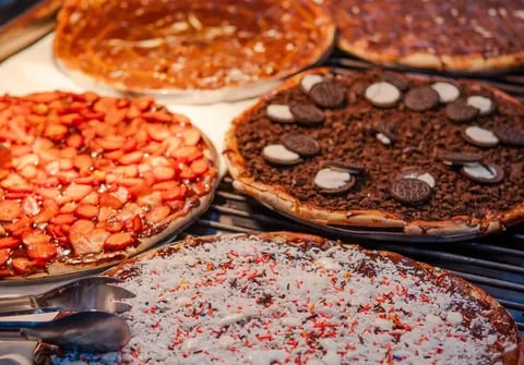 À noite, aproveite nosso rodízio com dezenas de sabores de pizza salgada e doce, além de petiscos deliciosos, perfeito para todos os gostos.